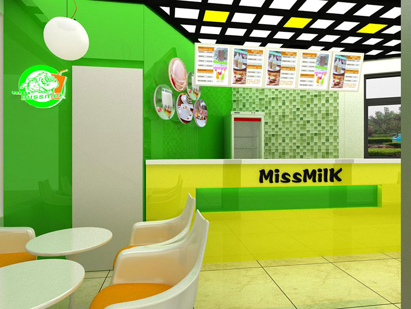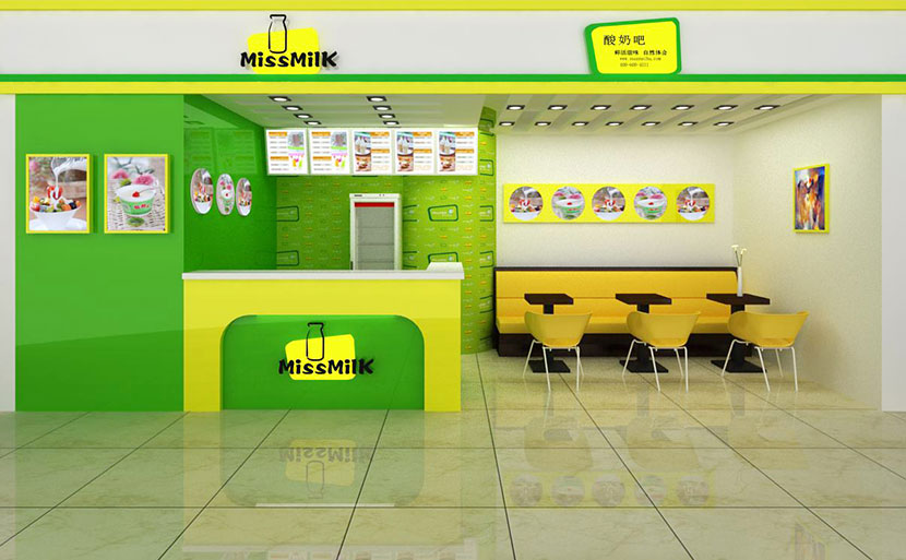 設計理念: ??酸奶店裝修效果展現出現代簡約與創意融合的設計風格。營造明亮且時尚的氛圍。店內則運用綠色的清新的色彩,搭配酸奶主題的裝飾元素,營造出溫馨舒適的用餐環境。整體設計注重細節,從色彩搭配到空間布局,都體現了設計師的用心與創意。