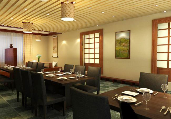 ??濟(jì)南南部某日本料理店裝修設(shè)計(jì),充分融合了日本傳統(tǒng)元素和現(xiàn)代元素,采用以暗黃色為主的燈光設(shè)計(jì)。以體現(xiàn)日式風(fēng)格的清新自然。同時(shí),墻面采用淡雅的米白色,搭配日式浮世繪風(fēng)格的掛畫(huà)或燈籠,增添一份文化韻味。讓顧客在品嘗美食的同時(shí),也能感受到濃厚的日本風(fēng)情。整體設(shè)計(jì)旨在為顧客提供一個(gè)既舒適又充滿文化氣息的用餐環(huán)境。