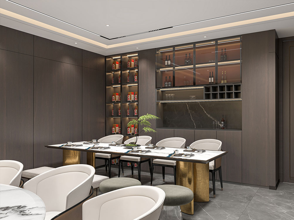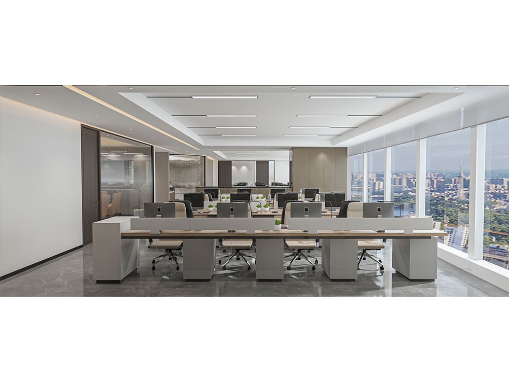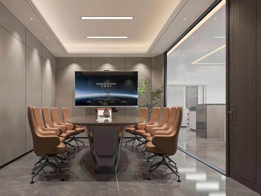 華潤集團辦公區裝修效果以 “大氣穩重 + 多元融合” 為核心,主色調選用深灰、米白搭配原木色與華潤標志性紅色點綴,既彰顯央企的厚重底蘊,又兼具現代辦公的活力。前臺接待區采用大面積啞光石材背景墻,嵌入金屬質感的集團 LOGO,搭配線條利落的深色接待臺與藝術化綠植裝置,傳遞專業且有溫度的第一印象;開放辦公區采用模塊化智能工位設計,配備獨立收納系統與人體工學座椅,墻面穿插集團業務板塊(如能源、零售、健康)的簡約主題掛畫,體現多元產業屬性;會議室按規模配置高清智能會議系統與隔音材質,大型會議室增設遠程視頻設備,滿足跨區域協作需求;同時設置兼具商務與休閑功能的茶水區、展示集團發展歷程的文化墻,以及供員工放松的休閑區,整體空間在保障辦公高效的同時,既凸顯企業品牌調性,又兼顧員工體驗與多元業務場景適配性。